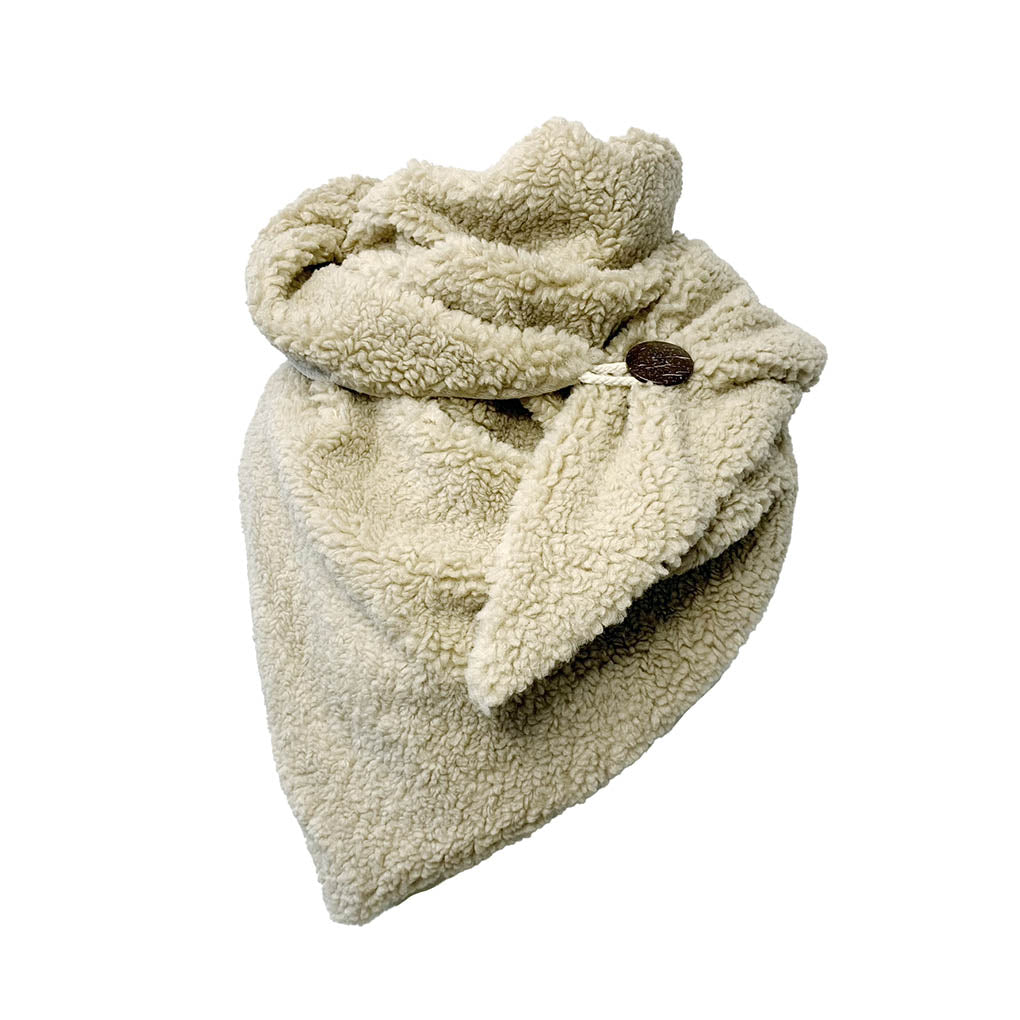 Der Teddy Schal mit Knopf "Tamara" ist ein lässiger Begleiter an jedem Winternachmittag! Weich und kuschelig, aus beigem Fleece, in Dreieckform - denn so wird jeder Tag sofort ein bisschen gemütlicher! Komm und hol dir deinen Teddy Schal mit Knopf "Tamara"!